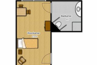 De studio wordt opgeleverd met een hoog-laag bed, kledingkast en overgordijnen van ZINN. De rest mag u vrij inrichten met vertrouwde spullen vanuit huis.