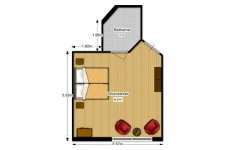 De studio wordt opgeleverd met een hoog-laag bed, kledingkast en overgordijnen van ZINN. De rest mag u vrij inrichten met vertrouwde spullen vanuit huis.