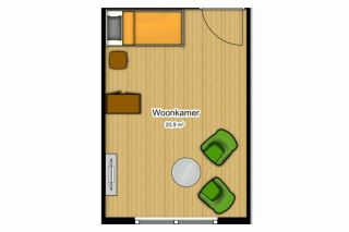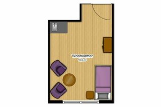 De studio wordt opgeleverd met een hoog-laag bed, kledingkast en overgordijnen van ZINN. De rest mag u vrij inrichten met vertrouwde spullen vanuit huis.