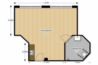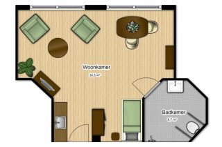 Aan deze plattegronden kunnen geen rechten worden ontleend. Plaatsing van de meubels en het bed is afhankelijk van de zorg en/of hulpmiddelen die u nodig heeft. Er zijn 11 type zorgappartementen. De indeling van het zorgappartement kan dus verschillen, dit is een voorbeeld.