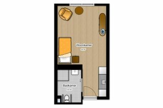 De studio wordt opgeleverd met een hoog-laag bed, kledingkast en overgordijnen van ZINN. De rest mag u vrij inrichten met vertrouwde spullen vanuit huis.