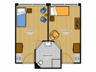 De studio’s zijn verschillend van grootte en het sanitair wordt gedeeld met een buurman of buurvrouw. De meeste zorgstudio’s hebben een mooi groen uitzicht. De zorgstudio’s zijn voorzien van vloer- en wandafwerking en overgordijnen. Daarnaast is de zorgstudio voorzien van een hoog-laag bed en een kledingkast. Uw naaste kan het verder inrichten naar eigen smaak met zijn of haar eigen meubels.